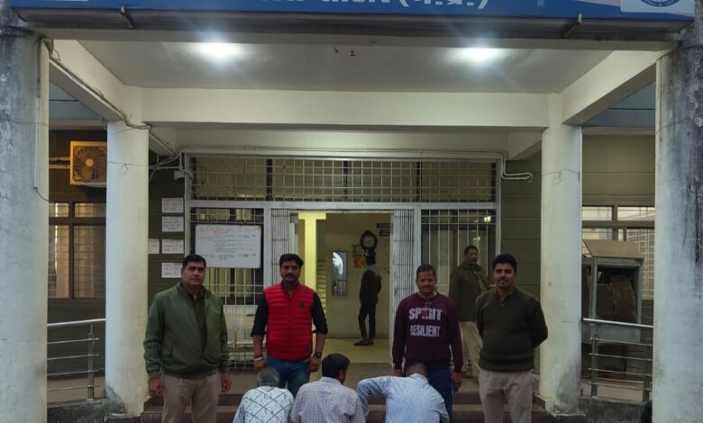 रेहटी थाना पुलिस द्वारा जुआ खेलते हुए तीन व्यक्तियों को रंगे हाथ पकड़ा गया। 24 नवंबर 2025 को ग्राम इटावा जदीद में पुलिस को मुखबिर सूचना मिलने पर कार्यवाही की गई ।