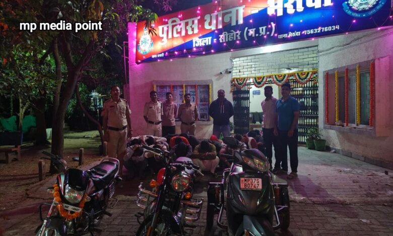 जैसा कि सर्वविदित है दीपावली की रात आदतन जुआरी अपनी आदत से बाज नहीं आते और मुकाम देख कर 52 ताश के पत्तों से हार-जीत का दाव लगाने जुट जाते हैं। इस बार भी सीहोर जिले में भैरुंदा थानांतर्गत एक स्थान पर ऐसा ही चल रहा था लेकिन पुलिस की नज़र से जुआरी बच नहीं पाए।