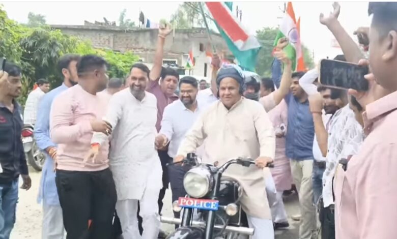 राजस्व मंत्री करण सिंह वर्मा मोटरसाइकिल से शामिल हुए तिरंगा यात्रा में…
