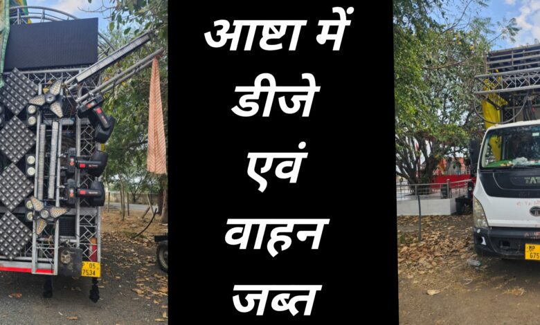आष्टा में हुई कान फोड़ू डीजे पर कोलाहल नियंत्रण अधिनियम की कार्रवाई,वाहन सहित डीजे जब्त