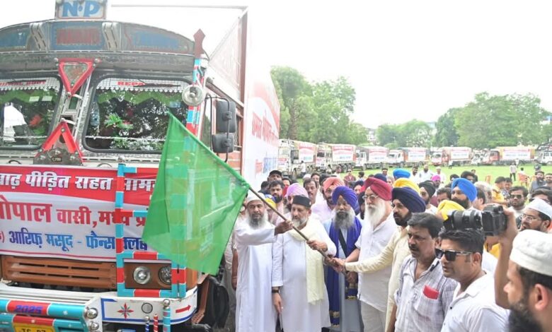 पंजाब बाढ़ पीड़ितों के लिए आज भोपाल से राहत सामग्री का काफ़िले को विधायक आरिफ मसूद ने हरी झंडी दिखा कर रवाना किया।