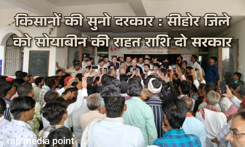 सभी किसानों ने अपनी मांग को लेकर सीहोर कलेक्ट्रेट कार्यालय में पहुंचकर ज्ञापन सौंपा,साथ ही कहा कि सीहोर जिले के किसानों की मांग है.. सोयाबीन की फसल लगभग पूर्ण रूप से 80 प्रतिशत तक खराब हो चुकी है इसके बावजूद भी सीहोर जिले का नाम मुआवजा राशि में सम्मिलित नहीं किया गया है जबकि मध्य प्रदेश के अन्य जिलों में मुआवजा वितरित हो चुका है। किसानों ने सरकार से कहा कि सीहोर जिले में भी जल्द से जल्द मुआवजा राशि वितरित की जाए जिससे हम किसानों को आर्थिक रूप से मदद मिल सके। इस अवसर पर करणी सेना परिवार के जिलाध्यक्ष ईश्वर सिंह चौहान, बृजेश पटेल, जफर लाला, सोहन वर्मा आदि प्रमुख रुप से शामिल रहे।